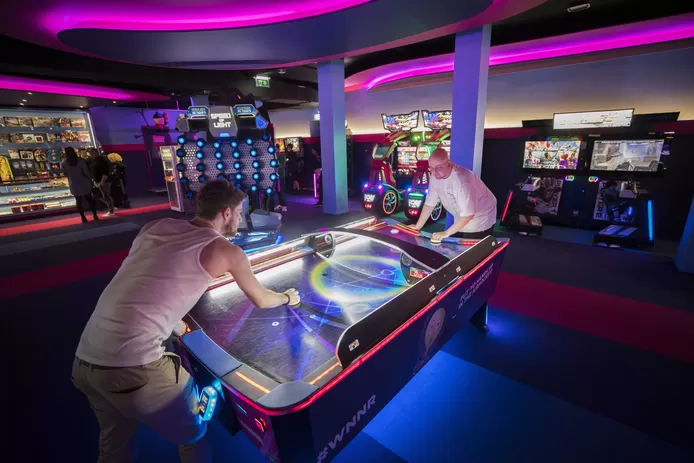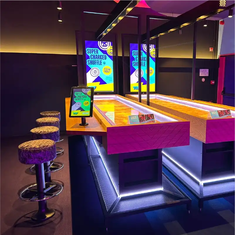 Step up to the action at Gamestate Antwerp with the newest addition: Interactive Shuffleboard!