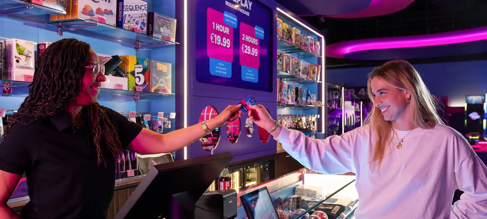 You can get and charge your Gamestate Playcard at the front desk or at one of the charging kiosks. You can also get your new playcard or recharge your existing playcard via our online webshop. - PLAY
